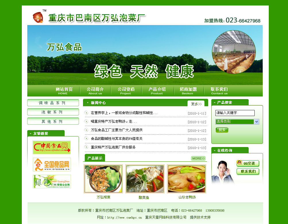 重慶萬弘泡菜有限公司主要經(jīng)營重慶泡菜、老鴨湯、排骨蹄花湯、野生菌、泡椒魚、酸菜魚、風蘿卜老鴨湯等.萬弘泡菜網(wǎng)址www.cqwhpc.cn
